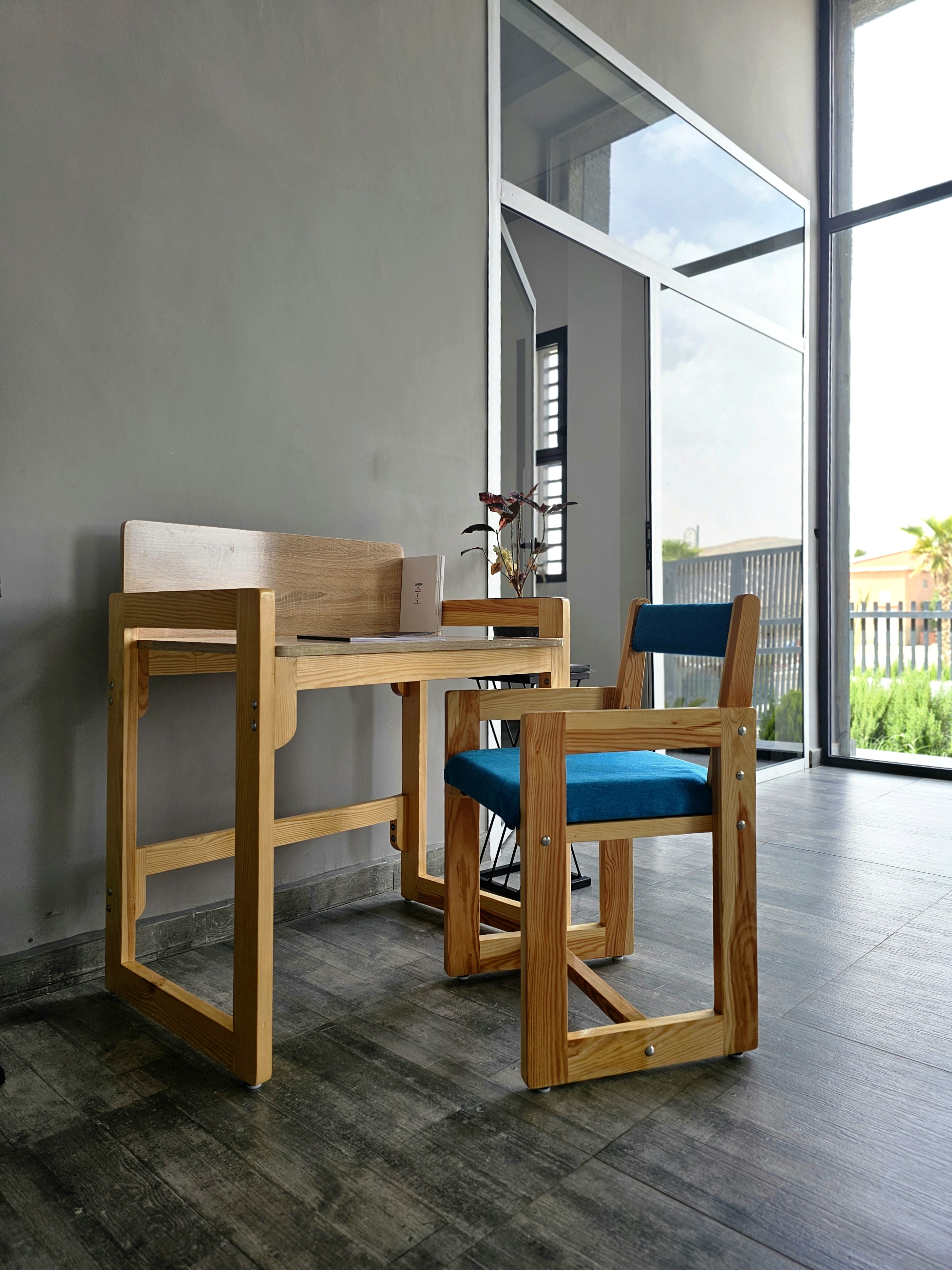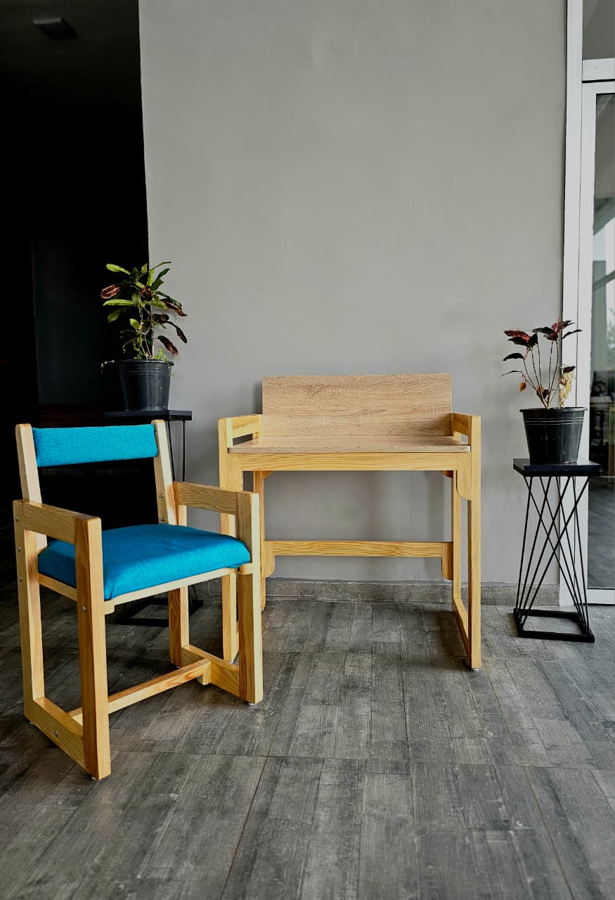 Bureau Enfant avec Rangement – Bois & Tiroirs Bleus